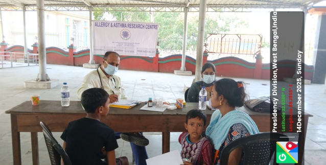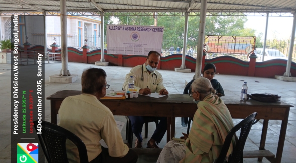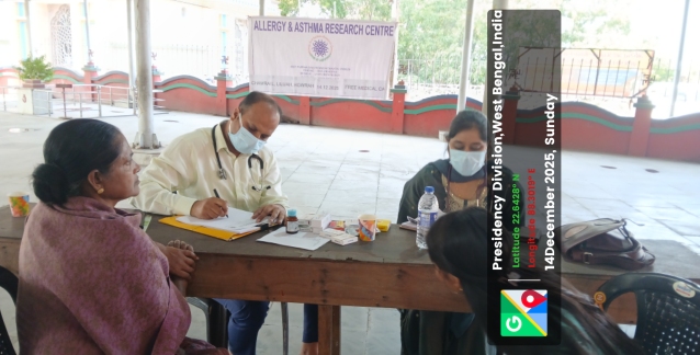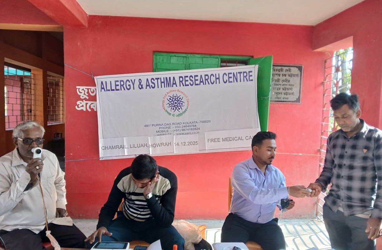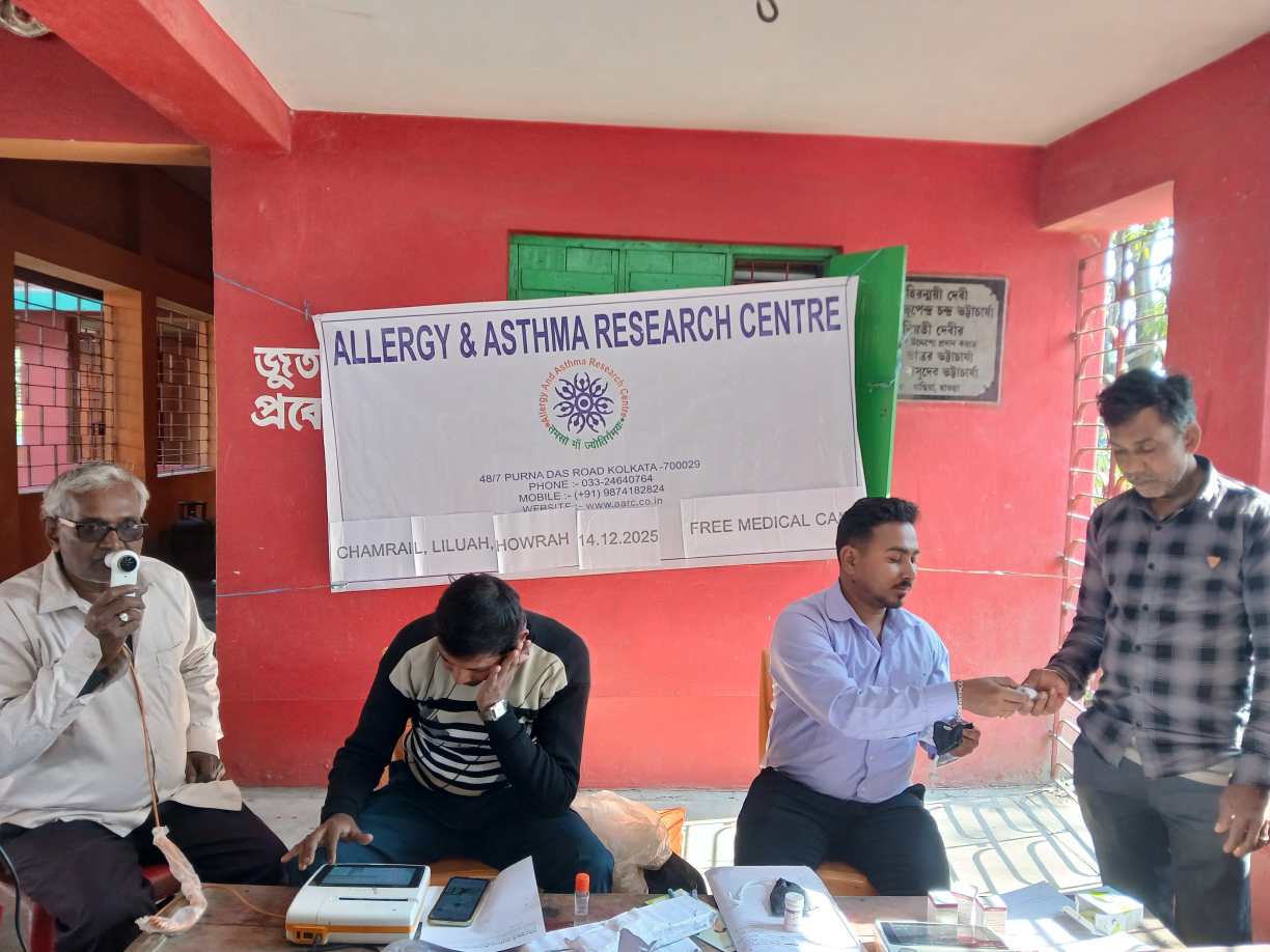 On 14th of December, 2025 Allergy & Asthma Research Centre conducted a free medical camp at a very remote area of Liluah, Howrah. The camp site was at a temple complex in a locality by the name Chamrail. Our beneficiaries had come from the nearby neighbourhood mostly suffering from breathing problem and a few also had allergic skin. One of the reasons maay be due to the industries present close by together with the proximity of NH-16″